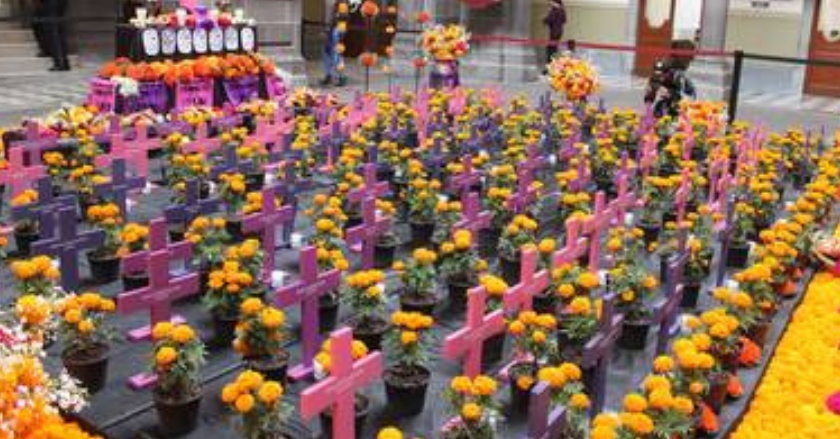 La ofrenda será montada con materiales como fotografías de las desaparecidas, pero también tendrá los artículos tradicionales como calaveras de azúcar, veladoras, pan de muerto, flor de cempasúchil, los manteles blancos, cal, sal y agua, que son para su alma.