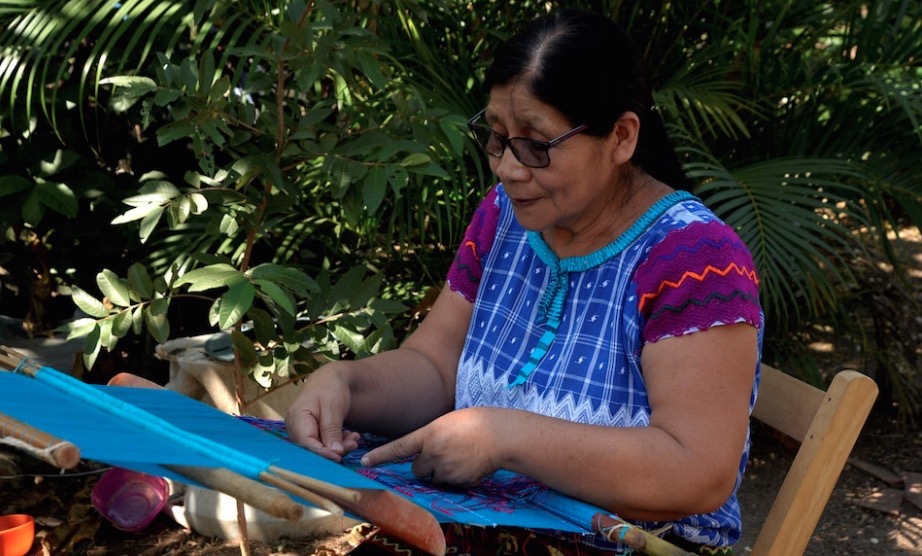 “Me enseñó mi mamá. Mi mamá me empezó a enseñar tejiendo servilletas, los hilos que veía que no usaba empezaba a jugarlos y veía cómo mi mamá tejía para yo hacerlo”, explica Carmen Vázquez, promotora del arte textil de los pueblos mayas.