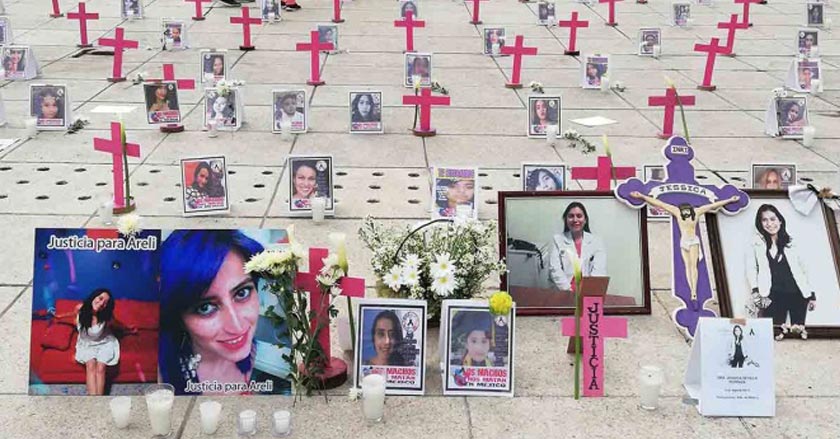 El Monumento a la Revolución se convirtió en un campo santo por los feminicidios en México; en lo que va de 2019 se ha contabilizado 2 mil 805 asesinatos de mujeres y por ellos se colocaron cruces de color rosa en la explanada, así como fotografías de las víctimas.