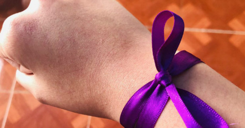 Dame la mano es una campaña que invita a colocarse una cinta morada en la muñeca para indicar a las mujeres que, en situación de peligro, pueden tomar de la mano, abrazar o pedir ayuda de quien lleve el listón.