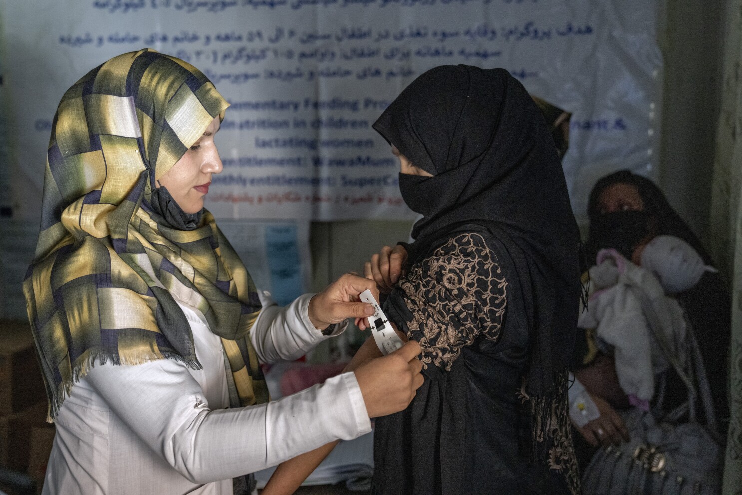 ARCHIVO -Una nutrióloga revisa a una mujer afgana en una clínica administrada por el Programa Mundial de Alimentos de la ONU en Kabul, Afganistán, el jueves 26 de enero de 2023. (AP Foto/Ebrahim Noroozi, Archivo)