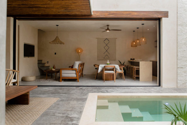 - ATMAN: Es un hotel compuesto por 200 villas de dos pisos. La decoración se caracteriza por acentos de color capuchino cremoso y cachemira. El diseño del hotel se inspira en el estilo típico de Tulum, buscando armonizar la relación entre los elementos internos y externos. Para lograrlo, utilizaron carpintería de madera de Tzalam carbonizada, que complementa la paleta neutra de chukum beige, junto con tejidos de ratán en iluminación y diseños étnicos de lana en textiles. El mobiliario y los elementos luminosos se diseñaron a medida y se fabricaron en el taller de Xixi Studio y por artesanos locales.