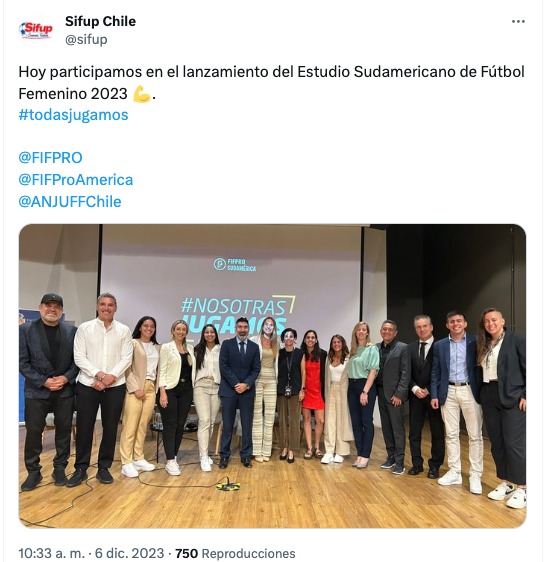 https://x.com/ANJUFFChile/status/1732504010341446050?s=20La mitad del universo de futbolistas en Sudamérica gana menos del mínimo legal, expuso Carla Rojas, autora del estudio y coordinadora de Inclusión y Género del Observatorio de Gestión de Personas de la Facultad de Economía y Negocios de la Universidad de Chile.