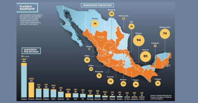 LOS ESTADOS CON ALERTA DE VIOLENCIA DE GÉNERO CONTRA LAS MUJERES CONCENTRAN DOS DE CADA TRES FEMINICIDIOS, UN DELITO CRECIENTE.
