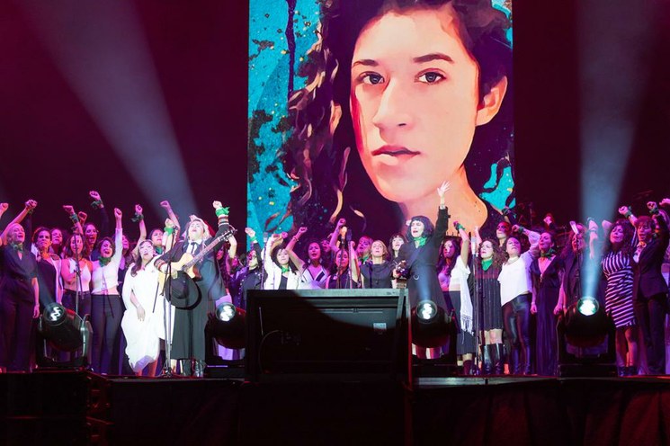 En el escenario, vestida con una blusa de flores bordadas y una falda negra, la cantante y activista guatemalteca pidió a la masa pensarse como una colectividad. Al dirigir unas palabras en kakchiquel, su lengua madre, y después repitió en español, para que todos entiendan. La joven pidió a las mujeres seguir en lucha, para librarse de la violencia, para que haya justicia.
