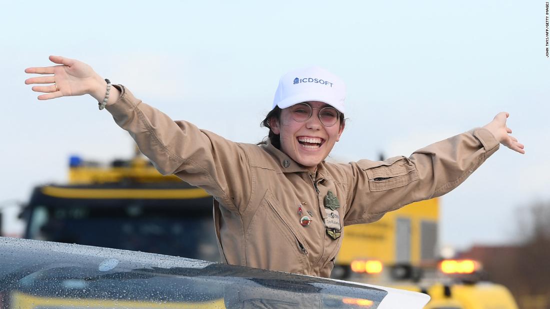 La aviadora adolescente Zara Rutherford se ha convertido en la mujer más joven en volar sola alrededor del mundo.