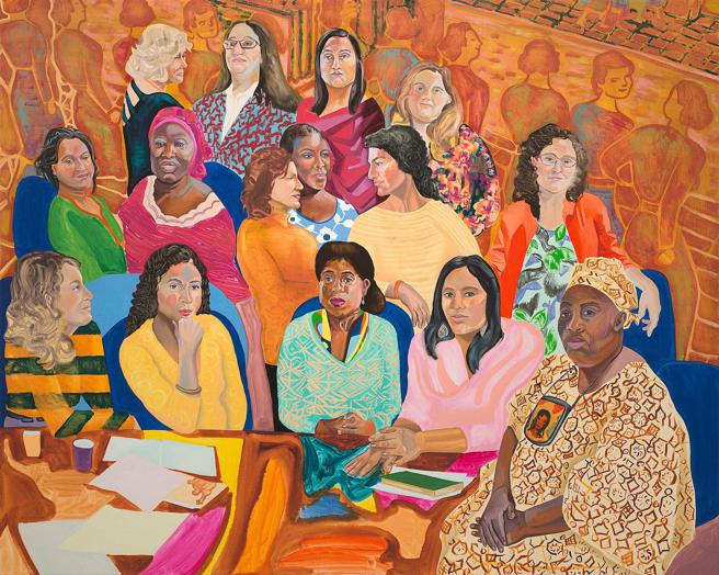 La gran sorpresa de la pintura actual, de la pintura más radicalmente contemporánea, es la irrupción de un género que se quería pretérito: el retrato. Y más en concreto, el retrato de grupo o coral, y más en concretísimo aún que este venga de la mano de artistas mujeres, y si seguimos aún tirando del hilo, que sean mujeres de lo que se venían considerando los márgenes : creadoras africanas o afroamericanas, de países latinoamericanos, inmigrantes en Gran Bretaña o Estados Unidos, donde no dejan de exponer en la Tate o en el Whitney neoyorquino. Ellas se pintan solas o acompañadas y lo hacen con la fuerza de su pincel o de su aguja y la estridencia de sus colores. Porque esto, también, va de color.