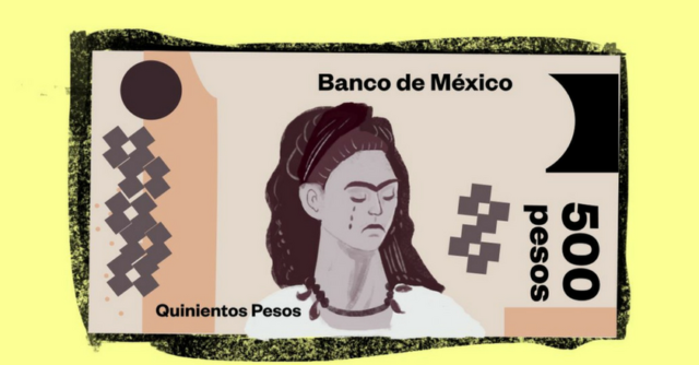 Fue la primera artista plástica en aparecer en un billete mexicano, y en el de 500 pesos, el que más se imprime en el país. Frida Kahlo y su esposo, el pintor Diego Rivera ocuparon por 12 años esta denominación. El lanzamiento obedeció al centenario del nacimiento de ella y a los 50 años del fallecimiento de él.