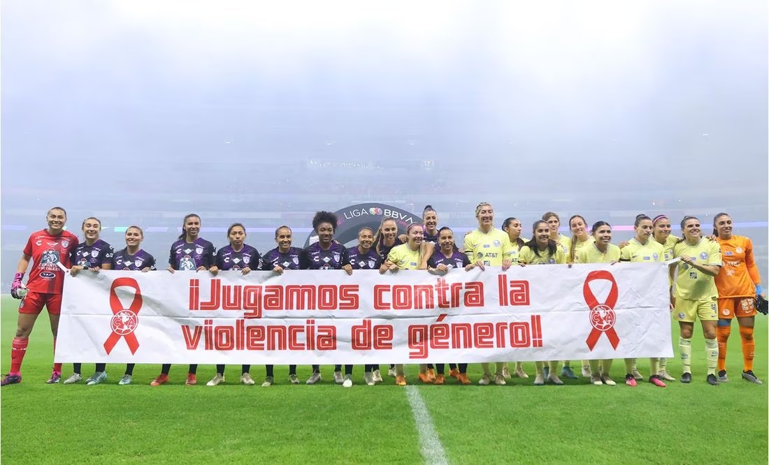 El deporte históricamente ha sido una plataforma para enviar un mensaje a la sociedad. Anoche, las jugadoras del América y del Pachuca salieron al campo de juego del Estadio Azteca con una pancarta con la leyenda: ¡Juguemos contra la violencia de género!