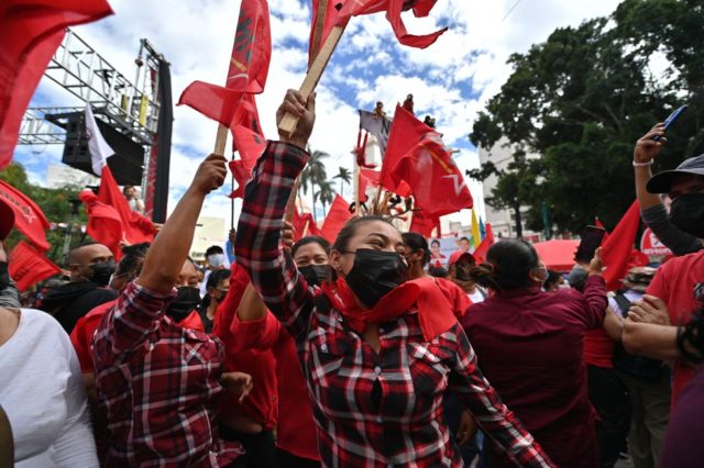 Xiomara Castro saluda a sus seguidores tras conocer los resultados electorales.