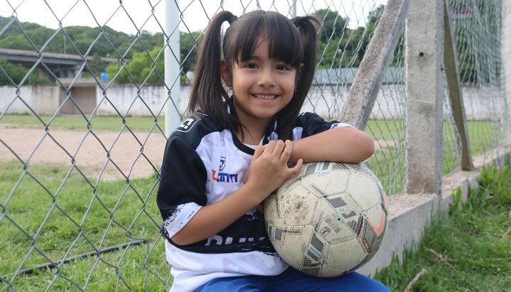 El fútbol es una manera de compartir una pasión y un reflejo de eso es la relación de Xiomara con la pelota, con su profe y sus compañeritos, que la acompañan y la integran como una jugadora más del equipo.