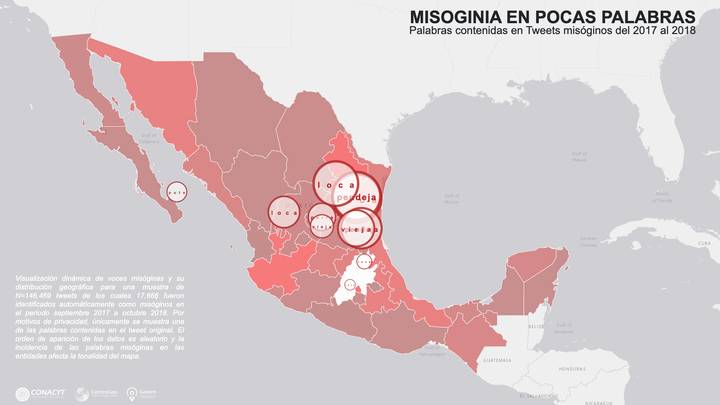 Figura 3. Visualización animada de voces misóginas http://mid.geoint.mx/MAPS/misoginiamap/.