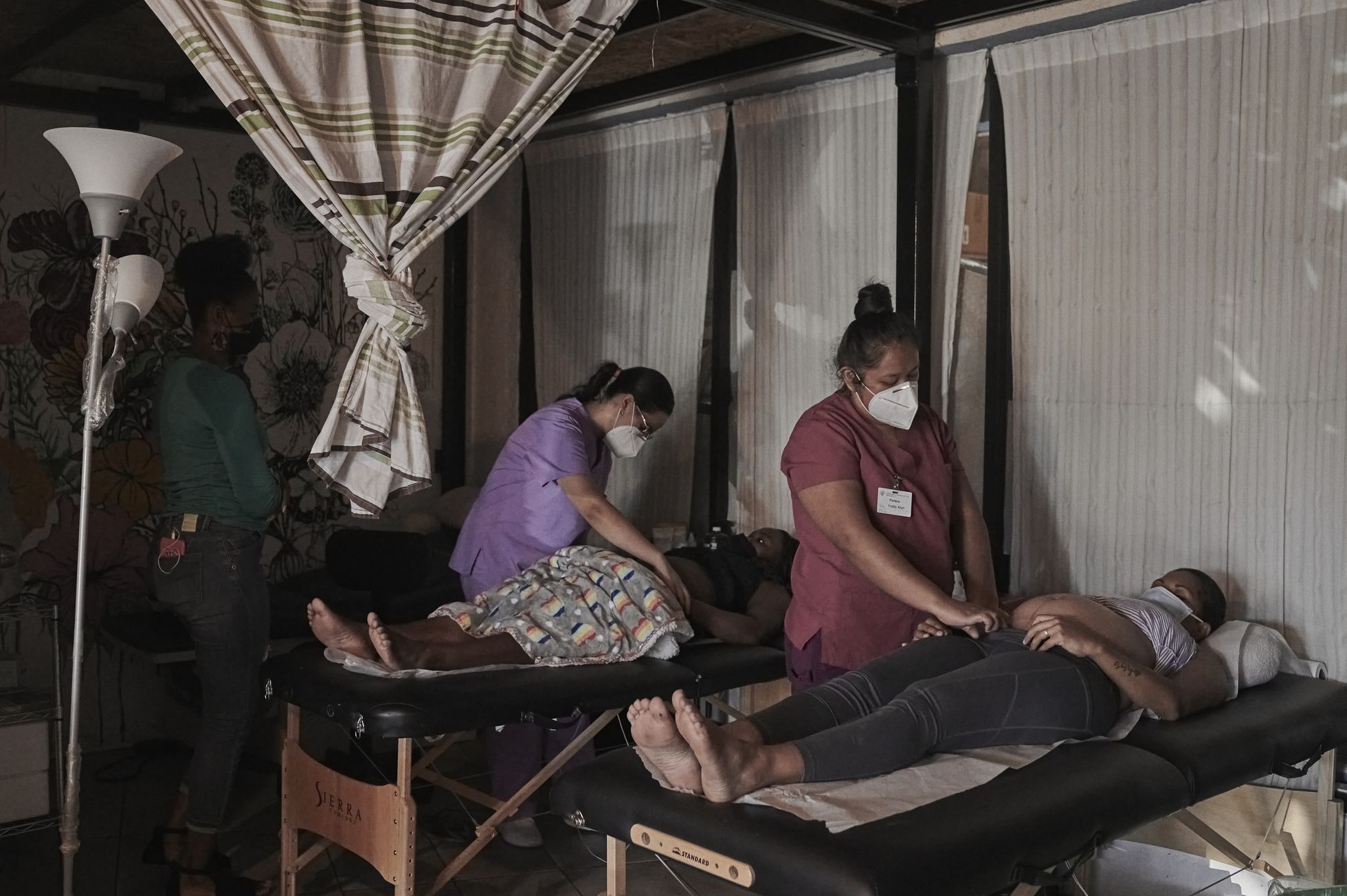 En el piso de arriba del mismo edificio, justo encima de esa planta baja que ocupa la clínica donde se encuentran Aylin, Maritere, Ylouseda y Julissa, se extiende una tela con los colores del aborto legal y el feminismo: mitad verde y mitad morada. La está pintando la activista y “acompañanta” Crystal, que se prepara para la manifestación del 28 de septiembre, el Día de Acción Global por un aborto legal y seguro. Es una persona que acompaña, desde el cuidado, a las mujeres durante la interrupción del embarazo, con el objetivo de que este sea seguro, libre y cuenten con una red de apoyo. Las acompañantas y las parteras trabajan de forma complementaria. Las primeras atienden a las mujeres, la mayoría migrantes, y cuando alguna de ellas quiere abortar, derivan el caso a las segundas y ellas se encargan de continuar el proceso.