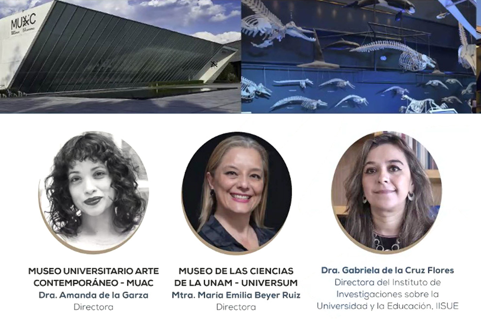Ante la presencia remota de Gabriela de la Cruz Flores, directora del Instituto de Investigaciones sobre la Universidad y la Educación (IISUE), Claudia de la Garza Gálvez, titular del Museo UNAM Hoy, destacó: “las mujeres han ido ganando espacios, centrándose, consiguiendo la posibilidad de ir moldeando los contenidos que hay, con intervenciones al relato oficial, con reescrituras históricas”.
