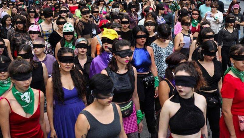 El performance se hará a las 17:00 horas en el Zócalo; participantes deben cubrir sus ojos con cintas negras y portar pañuelos verdes o morados.